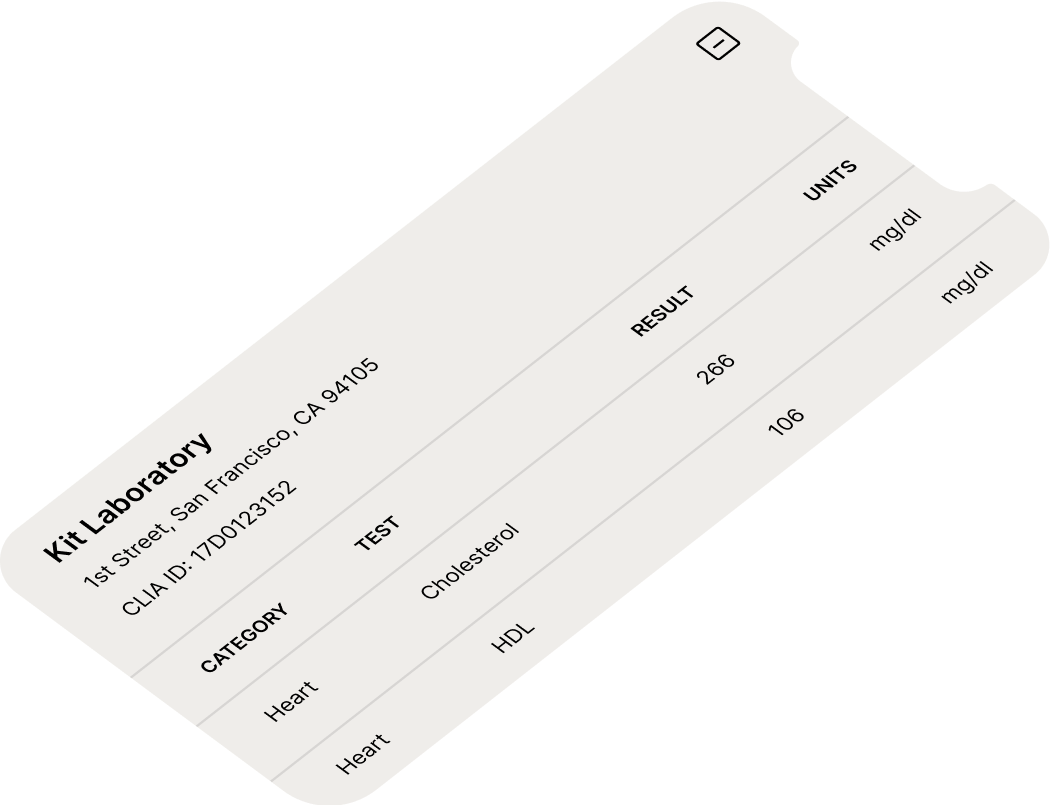 Kit's CLIA certified / CAP accredited high-complexity laboratory builds unique IP around over-the-mail testing collection and stability. Its lab leadership team is comprised of world-class experts.